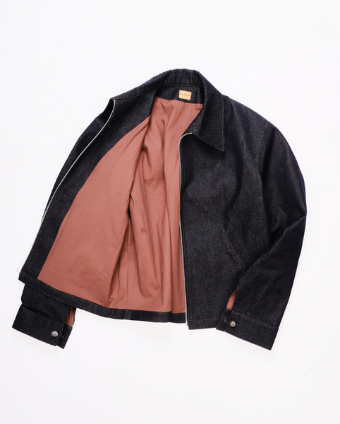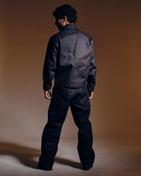 Our signature jacket, updated. Made with California milled denim, this unwashed fabric has substantial weight and presence, and will age flawlessly. Due to its unwashed nature the indigo dye will transfer to other fabrics.